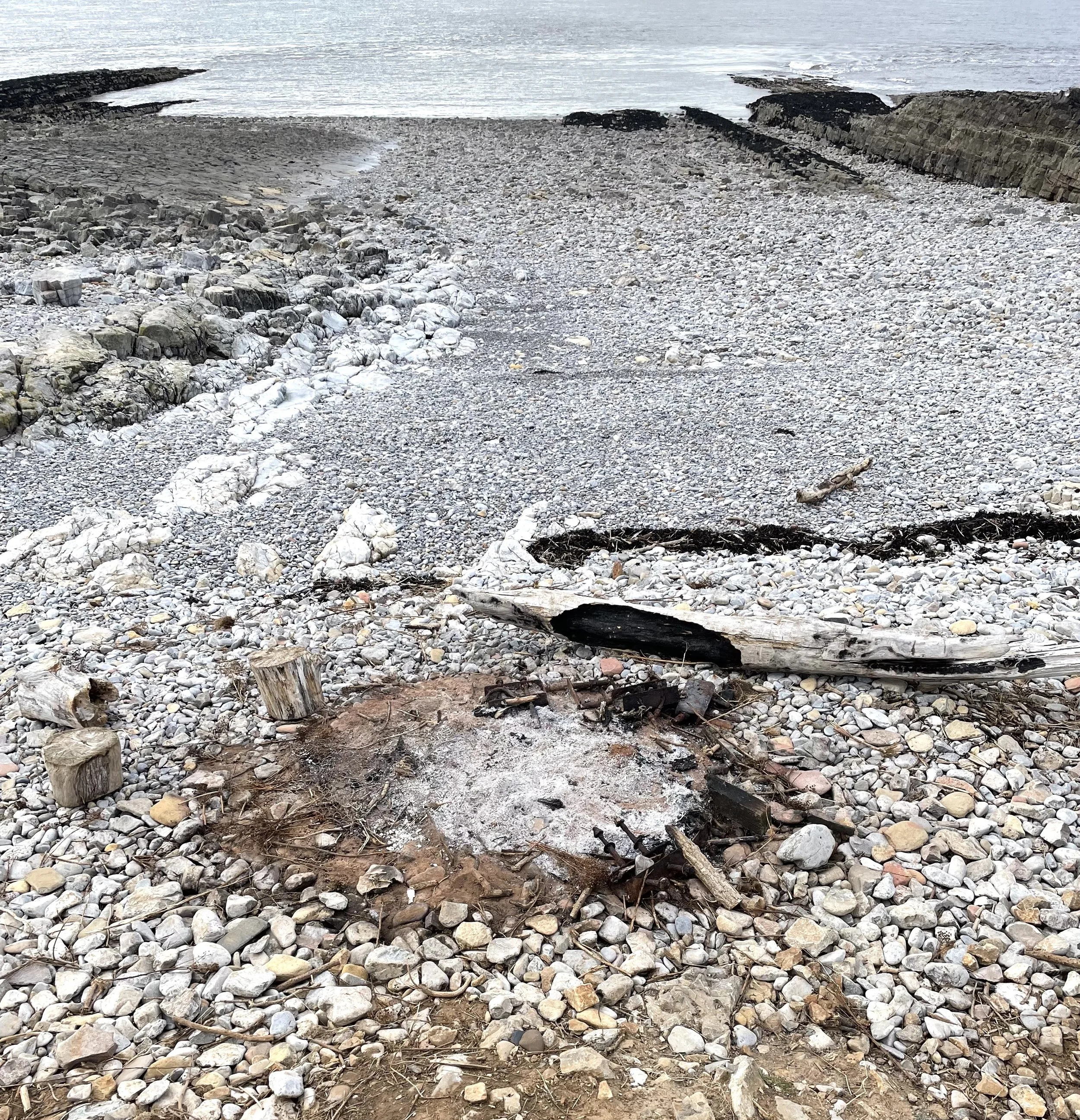 I kneel down and find a flat stone, good for scooping the ash into the ziplock bag.